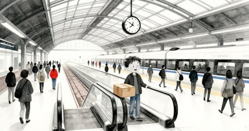 旋轉門旁的一支銅管四重奏奏出明亮的歡呼曲,突如其來的音浪在中央車站的雲石柱間回盪。米洛拉緊掌心大小的包裹上細細的繩子,目光鎖定檢票口外閃著水光的噴泉;九點零五分的巴士正停在那裡,鐘面已亮起 08:57 的數字。拖行李箱的滾輪聲、外套擦臂聲此起彼伏,一輛嬰兒車的輪子輕撞他的腳後跟,把他推向一邊。他改變行進角度,鑽入兩個盯著同一塊發光時刻表的通勤者之間,每一步都在流動的人潮中穿梭更深。