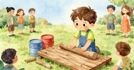 經過數次吃力的拉扯,螺栓終於鬆動,當他們以撬棍、繩索和體重協調發力時,木板移開了。同樣的方法再取下兩塊,整齊堆在提燈旁,雲層也悄悄變薄。兄妹把木板綁成簡易雪橇,拖過破裂的軌道,拉向等待的車。風第一次平息,提燈火焰直立,不再在空中不安地舞動。濕靴吱嘎作響,繩索嘎吱輕叫,破船塢的大門在他們身後闔上,再沒抗議聲。修好的平台立在潮水之上,空桶靠在寧靜的船邊。
