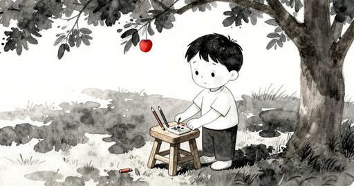 忽然一聲尖銳嘶噓打破寧靜。一個噴頭鬆脫,甩動水管,在通道上畫出水霧弧線。水花濺到他剛完成的草圖一角,顏料被沖成游移的水痕。他連忙把畫紙挪開;凳腳卡在石子上搖晃,把他向前推去。一隻靴子打滑,他的肩膀撞到靠在長凳邊的塑膠桶。桶翻轉,正好落在失控的噴頭下方接住大部分水流。溢出的水爬向種滿休眠鱗莖的花箱;水珠滲入土中,額外的濕氣在接下來的週內默默支撐再生。