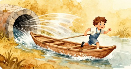 He had already drilled a second mast hole. He slid a spare stick into place and tightened a fresh thread from his pocket. The repair looked secure, yet a child beside him frowned at the loose rudder. Bela reassured her with a quick grin and a raised thumbs-up. He then pushed the light raft over the mirrored water once again. The wind calmed, but a curious duck glided over and nudged the vessel, tipping it until water flooded the deck. Bela let out a short laugh, though the fingers gripping the pond edge suddenly tensed. If he had chosen heavier wood, the duck would have failed to upset it. He lifted the dripping raft, welcoming the grateful coolness soaking through his sleeve.