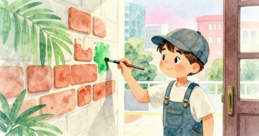 清晨的陽光斜照進狹窄的巷子,米洛站在搖晃的梯子上。那面牆仍留著暗灰色塗鴉,但麗婭已用新的底漆滾過。兩人明顯的目標是:在週末市集開始前,用繽紛壁畫覆蓋這些痕跡。午餐時米洛已畫好第一張草圖,想把城市生活的多元意象整合在一起。當滾筒經過,牆內的水氣滲出,油漆如緩慢的雨滴糊開線條。一股濕磚味飄上來,和壓克力漆味摻在一起。麗婭擦臂,看到下方磚面上一道泥腳印,大笑起來。梯子後腳踩到碎石打滑,米洛只得抓住最上層橫檔。麗婭用兩把雨傘和繩子搭了簡易棚子,可風又把它扭到一邊。