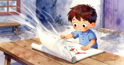 第三次突然潑灑後,米洛重新想像那攤擴散的水跡;邊緣彎曲,像隻狐狸朝看不見的葉子奔跑。麗婭拿起較細的筆,沿著尖耳描線,橘色筆觸逐漸為原本單調的磚面注入生氣。如果塑膠布再寬一點,先前的滴痕早就消失。然而新圖形讓兩人靠得更近,頭輕輕傾向同一方向。他們追求平衡的過程仍在持續;圓形與細線衝突,直到黃昏把巷子染成琥珀色。麗婭早知道天氣預報就好了,另一陣風掀起雨傘,把罐子滾到巷尾。她撿起罐子,退後一步,驚訝地看見狐狸尾巴正好與那道泥腳印對齊。米洛點頭,悄悄用漣漪取代原本的圓形,終於讓顏色覆滿每一塊固執的磚。乾燥的磚面上,一隻亮麗的狐狸沿著藍色足跡在夕陽下伸展歇著。