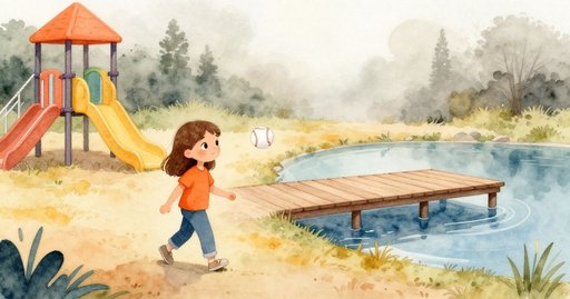 繩子墜落,打開三壘旁的閘門。一顆流浪的足球從敞開的空隙滾進來。足球正好停在山姆的跑道上。山姆大步跳開,雙臂擺動保持平衡。他的鞋尖掃到足球,讓它旋轉。米雅追著旋轉的球,輕輕撞到山姆。他們踉蹌一下,但仍朝本壘前進。山姆先踩到壘包,米雅緊跟著落地。塵土飛舞,球棒靜止,閘門再度喀噠關上。笑聲充滿球場,團隊合作收拾小小混亂。山姆把球棒重新放回架上。他走向長凳,喝了口冰水。投手又朝等待的手套拋出一顆球。