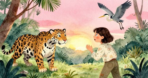 納森在日出時踏進紅尾峽谷,眼神充滿好奇,與鳥兒和昆蟲互動,廣闊景色映出晨光與大地。