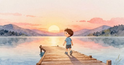 莉娜拿著一個小玻璃罐來到公園的湖邊。她想把三條小金魚換到更寬闊的地方。細窄的木橋連接岸邊與一座長滿草的島。島中央有一個圓形石池。莉娜慢慢走上橋,小心地挪動腳步。一塊鬆動的木板在她腳跟下裂開並向旁邊傾斜。罐子晃動,水迅速濺出罐緣。一條金魚在晃動的罐子裡跳動,撞到她的手。莉娜僵在原地,但木橋還在搖晃。