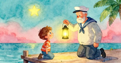 1.莉拉走向木碼頭,月光與柔和冰藍背景相映,她邁步迎接平靜夜晚,展現期待與溫馨情感