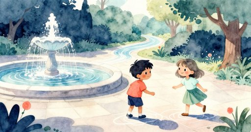 里奧把速寫本夾在手臂上,望著城市公園那座古老城堡後方的庭院。噴泉上方掛著一道亮麗的彩虹,西邊的雲層滑動,彷彿隨時要抹去它。他想在色彩散開前畫下清晰的線條。瑪雅站在旁邊。通往塔樓的窄橋原本暢通,現在卻被一排堆疊的油漆桶擋住;早先清洗留下的水珠滴落在木板上,表面又亮又滑。兩人停下時,雲影已經越過半道彩虹,少了一條色帶。暖光下,一陣風帶來濕石與青草的涼香,同時捲起遠處鴿子的柔和咕嚕聲。