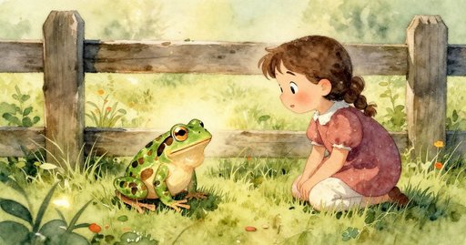 每天早晨,Sage 都會推開溫室的門,並在通風口柔和的黎明嗡鳴聲中,讓門軋軋聲與其同步。從沒有人或動物等在門檻上——直到今天,一隻光滑的綠色青蛙蹲在澆水壺邊緣,喉嚨像小鼓般微微鼓動。牠潮濕的呱聲在玻璃板間迴盪,隨後寂靜融回噴霧管慣常的嘶響。冷凝水沿著玻璃滑下,織出蜿蜒的水紋,把這只生物的倒影映出兩次。Sage 把門半掩,衣袖被水珠沾濕,篤定這訪客隨時會跳走。然而牠一動不動,雙眼發亮。她吐了口氣,門鉸發出低哼,熟悉的泥土甜氣隨即湧過她的靴子。