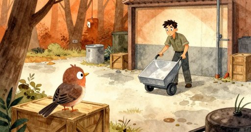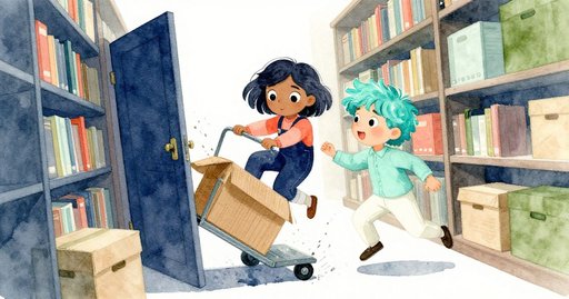 金屬般的嗡聲從狹長庫房上方那台疲憊的吊扇傳來。歐文和薇拉站在一只高大的陶製桶旁,桶底放在小型帶輪轉台上。上週送貨的商販沒有留下任何能夠轉開緊蓋的工具。他們想在下一批貨到來前打開桶並搬出裡面的物品。架子到裝貨門之間有一道微斜坡。每當他們碰到桶,轉台就會滑動。走廊的涼空氣混著室內較暖的空氣,帶來乾紙箱的氣味。歐文把靴子穩住,用雙手扭轉桶蓋。桶反而自轉,向後滾動一指寬,把先前的力氣全抹去。
