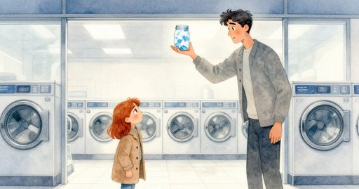每個星期二的下午,費恩街自助洗衣店的門都會被推開,羅恩拎著帆布袋滑進室內;然而今天,通道上的橡膠墊歪在一旁,露出一塊較淺的新淨磁磚。洗衣機少見地發出不齊的節奏,其中一台砰砰敲擊,其餘仍維持熟練的韻律。剛從口袋掏出的硬幣仍帶餘溫,他投進一台烘乾機,注意到窗上薄薄的鹽漬,像是短暫的暴風雨曾擦過玻璃又匆匆離去。