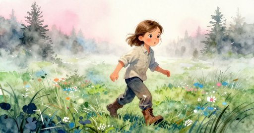 It was the ribbon, not the basket, that snagged the wet grass when she turned, and that tiny tug reminded her palms of an old counting game. Without deliberate thought, her fingers drummed the basket rim—tap-tap-rest, tap-tap-rest—exactly the rhythm she once used to skip stones. The body’s memory organized her stride: twelve short steps then pause, twelve more, mapping the unseen meadow like rings spreading across water. Mid-sequence a cooler breeze slid across her calves, as though the field were inhaling; she stopped, realizing the fence line had vanished beside her. Where she expected wood, only fog breathed, silent and pale.