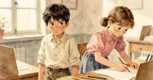 粗糙的粉筆灰黏在戴爾的大拇指上,他把作業紙推到一旁便站了起來。走廊裡傳來金屬般的鈴聲回音,宣告下一次響鈴前只有四十分鐘的空檔。他想拿到儲物櫃裡那捲厚紙,好讓小組海報看起來更工整。他快速穿過成排課桌,鞋底吱吱作響,膝蓋彎曲以閃避散落的背包。走出教室時,他的肩膀擦過辦公室門旁那張破舊扶手椅,椅墊因長久無人使用而下陷。每一步踏在拋光過的走廊上,都讓時鐘的拉力更明顯;截稿時間幾乎像實體般壓在他的胸口。他抵達櫃門前,卻見理化老師已先旋轉把手,滑身進去。