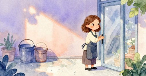西亞把乾淨水桶滑到最低處,先收住那股帶著土腥味的慢滴。包裝紙已被浸出不規則圓斑,但色彩仍鮮明;她展開乾紙,輕蓋在作品上,好讓蒸散繼續又不再弄濕新紙。她沿花泥邊緣最後一壓,把尚存的溫水推進水桶,小小的連鎖滲漏於是緩了下來。她把桶留在台邊待會兒再倒,抱起未完工的插品走向冷藏區,那裡的涼氣能減慢下一步滲水。她背後,橡膠墊板上的細流仍朝桶緣滑動,自顧自地沿著表面漫行。