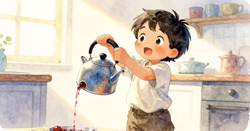 Ivan twisted the dial lower, and the glare under the kettle dimmed, slowing the rise of foam before it reached the rim. Fleur grasped the funnel, held it steady, and ladled the thickening mixture, watching light flicker along the glass as each jar filled. Extra sugar had accidentally been stirred into the pot earlier, unnoticed beneath the glare and the drifting steam. That minor slip now hurried the set, revealing how small changes could shift the whole reservoir. One drop flung during the surge clung to the fossil’s coarse edge, and a line of jam inched downward toward the sink.