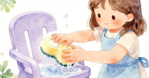 瑞斯把腫脹的黃色海綿沉入溫暖的水盆,泡沫在他袖口邊嘶嘶作響。他用力一擠,濕漉漉的水柱拍回水面,發出空洞的咕嚕聲。他跨過滴水路徑,走向花園桌上一塊被太陽曬褪色的區域,每一步都因海綿滲出的水珠留下輕拍聲。第一次在塑膠表面來回擦拭時,先是低低的磨擦,接著無聲;然而空氣掠過那片區域時,微弱的粉白薄膜浮現。他把海綿浸入清水桶,但桶裡的水因被困住的泡泡而低聲咕噥,並釋放出帶皂的悶濤。一道泡沫脊好像替薄薄的水波「動員支撐」,波紋翻過桶邊,在備用區濺起細碎水花。瑞斯停下來細看那暗淡條痕,開始構思更緊的擰法,希望下一趟能沖掉殘留皂跡又不浪費水。