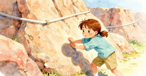 她嘗試更低地蹲下,手肘收緊,但固執的陰影仍緊貼礦物。整個下午,院中的暖空氣一直上升,也讓頭頂枝條上的小李子成熟。然而那條陰涼帶仍頑固地阻擋石面需要的溫度。她再次調整姿勢,把素描本墊在膝下,像修剪樹籬般坐得更高。陽光照到邊緣,水面又在亮處發出輕微的嘶聲。蒸發在石面刻下粉扇與細環,乾透後裂成赭色斑點。屋簷又落下一滴水,擴散出涼圈,幾乎模糊一切;Gemma 將素描本斜立成屋簷,把水引向已乾的區域。一隻小麻雀落在被改道的小水線旁,斑點翅膀揚起一縷輕塵。牠啄了一粒鬆動的細沙,接著沿著溫暖的日照石面跳走,爪尖發出不均勻的滴答聲。