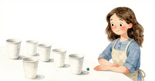 A stronger gust buzzed through the canopy; the third, sixth, and ninth cups slid half a finger-width and threatened to topple. Jasper pressed a fingertip on one cup; its tapping stopped, yet the others still rattled. He had moved the crate of apples earlier to steady the sign, and that extra weight muffled nothing. A handful of seeds, shaken loose from a neighbour’s gardening bag, skittered across the wood and dropped through narrow gaps, ticking like dry rain. Olive lifted the cardboard sign and found thin water lanes under each trembling cup. Condensation from the pitcher had drawn tracks that guided only those positions. The folded edge showed marks of an inventive mind: ridges directed drips as precisely as gutters on a roof, and the cups followed the hidden order.