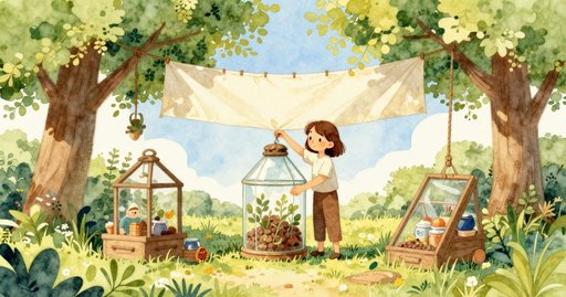 她跟著祖父母走向鴨子餵食欄杆,池水帶著微腥藻味。小燕麥撒落,水面翻動,魚腥味貼在她外套袖口。從那個新角度,她看見隱藏灑水器啟動時,噴泉水柱會收細。一個噴頭先前被公園工人鎖緊,嘶嘶聲蓋過其他水柱,帶出刺鼻氯味。旁邊為永續設計的花壇,迷迭香與萬壽菊釋出辛辣香,濕土濃厚。溫熱堆肥像溫床冒出蕈菇味蒸氣,黏在舌尖。行道上黏土混碎石卡在鞋底,每一步都有粉石味散開。突來的陣風吹起祖父母相機袋上的小傳單,他們一起追到風停。