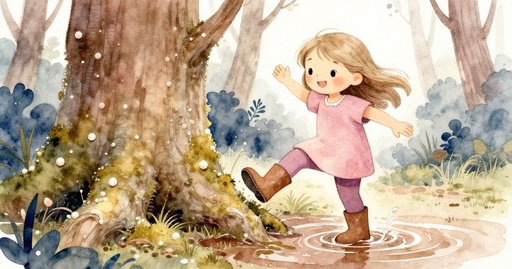 The limb sank slightly, so she added a slimmer branch for balance; water splashed from the groove as it dropped beside the first. Freya, gathering sticks nearby, hurried over and began to gesticulate with a twig, tracing imagined footholds in the air. “Try the flatter side,” she said, voice almost lost under the steady hiss of rain. Ruby fetched a third, knotty piece and wedged it between the others, yet the improvised ladder quivered with unsettling uncertainty. A flattened raspberry stained the moss under her boot, reminding her how soft the surface had grown. Just then a hedgehog shuffled from the gap beneath the root plate wall, its spines shining blue-black; the sudden movement snapped a brittle sound thought and made both girls freeze.