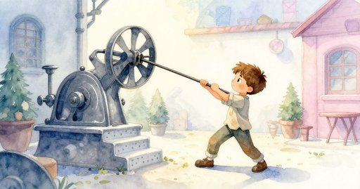 風繩手柄在琥珀色燈光下閃亮,但下方的黃銅捲筒乾澀而缺油。Cora 的晨間任務很簡單:加入新油,再在透鏡減速前把重錘上捲。她腳邊放著一壺品脫的機油,壺口在樓梯格柵透進的金光裡閃爍。她傾倒油壺,卻只有薄薄一濺擊中捲筒,像雨卡在排水口般立刻停住。她探頭查看壺嘴,看見一片緊塞的軟木細片,怎麼也弄不出來。她試著用螺絲起子撬,但工具滑落,在穿孔金屬階梯上叮噹作響。油從壺口滴到格柵上,緩慢的琥珀珠沿鐵紋蔓延。