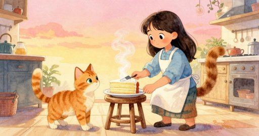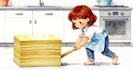 第二十張餅皮定型時,帶奶油味的溫熱煙柱飄向開窗,一隻蛾子穿過照在檯面的陽光條紋,翅膀拍擊鐵網架發出陣陣酸嗆味道。聚在板下的甜味小螞蟻受驚四散,妮芙被沙沙聲嚇得撞到網架,最上層餅皮開始往地面滑落。布莉特胸口微縮,她抓住網角卻因手上沾著麵粉而滑。她瞥見那把粗柄鏟仍在旁邊——正是先前弄亂抹面的粗糙,如今能提供摩擦。她把鏟柄塞進網架底當支撐,木結牢牢咬住鐵絲,滑動止住。雙手空出的布莉特把微斜的蛋糕推回正中;鏟子留在原位,穩穩撐著她們共同的作品。