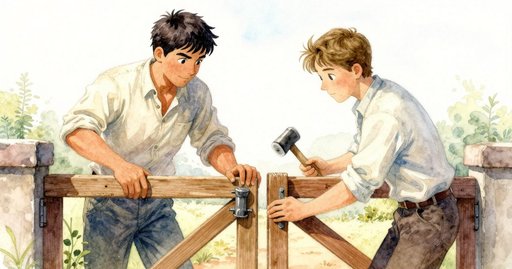 烏薩站直身子,自信只要把卡扣按回去即可;畢竟,這座庭園仰賴的工具,就像麵包店得靠那一批穩定的麵糰。她推回釘栓,試畫一道線,看見新壟繞過最大石頭形成光滑月牙。邊緣乾淨得可以嚐到,像揉麵後殘留的米粉般粉甜。昨日的紋路可沒有這樣大膽的弧,她任其擴散,笃信能增添而非破壞河水意象。然而半途卡扣再度鬆脫,碎石猛然奔流,壟脊坍陷;一隻遊客小孩遺落的布偶被埋到絨膝。正是竹圈的鬆動,把清晨的精細變成了笨拙的崩潰。