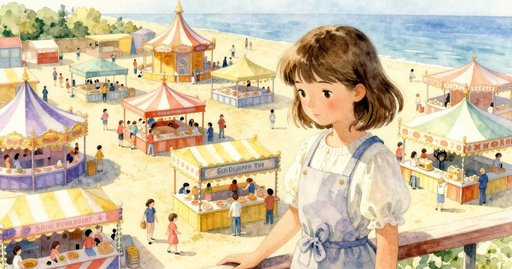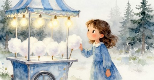 每到傍晚,天際剛染成紫色,基恩就會走到棉花糖推車旁;今晚,卻先有一隻麻雀鑽進條紋遮篷下。它的翅膀在溫熱金屬盆上方閃動,然後停在盆緣,對那帶著焦糖氣味的持續馬達嗡鳴毫不在意。周圍爆米花攤的鹹味和被踩碎的青草微甘交織,空氣層層疊疊。基恩把糖舀進槽內,動作和往常一樣穩,但鳥兒的出現像一段細緻插曲,割開了慣性。糖發出嘶嘶聲融化,熱氣上升;麻雀歪著頭,與升起的蒸氣節奏同步。