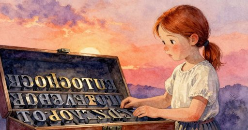 平床印刷機上方的小油燈燃到只剩指尖般長短的燈芯,那微弱的光比任何時鐘都更清楚地顯示早晨已拉長。Ruby 把新紙張放到印壓板上,感到溫熱的壓板懸在頭頂,接著來回推動上墨滾筒。每一次滑動都發出黏稠的輕聲,燈焰隨著印刷機的鬆緊節奏搖晃,齒輪在每次衝程後微微回彈。