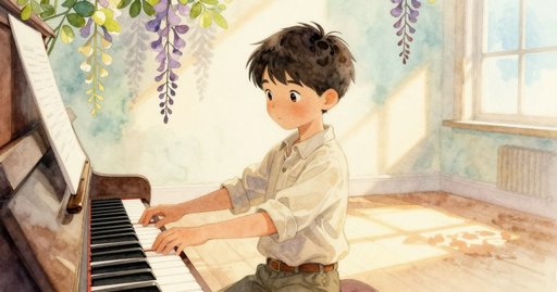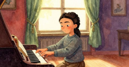 當芬坦掀起琴蓋時,房間裡依舊沒有節拍器的滴答聲,只有一座由琴弦與氈毡構成的城市顯露眼前。窗邊的銅製時鐘以兩下為一組,耐心地敲出節拍,悠然不迫。兩條鄰近琴弦微幅失諧,一股低沉的顫音在天花板與地板之間遊移。芬坦把暗綠色橡膠消音楔塞進兩條銅纏弦之間,按下中央 A。細微震動沿著琴鍵爬進手心,音高這才傳入耳中。他把音叉輕敲在膝蓋上;纖細的共鳴懸在擊槌上方,隨即消散。調音扳手像橡木與鋼鐵構成的細長鷹隼,靜靜伏在密集弦陣之上。午後的光線沿著琴弦滑落,沒有一絲漣漪,把每根弦化成銀色蘆葦。