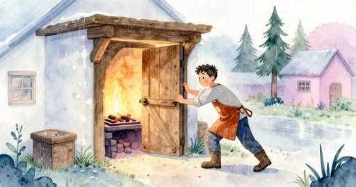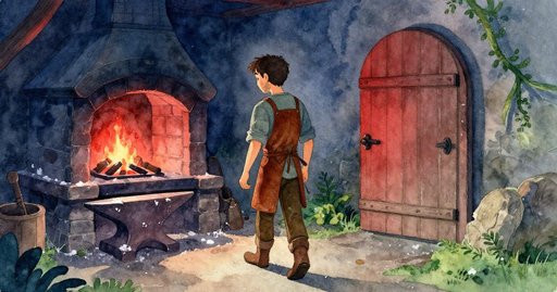 風箱收縮得比心跳還快地吐出一口氣,隨後鬆落,火焰的色彩從櫻桃紅推向近乎白亮。Liora 夾住發光的門鉸,放到鐵砧面上,以一二、一二的節奏敲下十字錘。「給我直一點。」她對著鐵條低聲說,可金屬再次扭斜。每次落槌,條件反射般的偏移都把新生的氧化皮壓進她的指關節,留下細微刺痛。她停下,把那節指關節在圍裙上滾一圈,再咬緊牙根加大力道,可擊聲卻失了往昔的清脆。最後一擊過後,鍛室沉入絕對的靜,鐵砧慣有的回音不見蹤影;熟悉的某樣東西缺席,鉸鏈仍不成線。