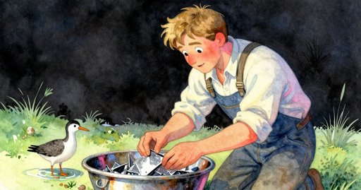 一道谷內疾風倏然闖入,無影地衝上蒸發場。氣流貼著她身側推出對角動線。她立刻停步,握緊耙柄,免得風把它掀倒。桶口濺出的水珠足以濕潤袖子,在布料上留下深色弧痕,隨陽光很快轉涼。她等待,目光掠過遠牆;疾風來得突兀,去得也突兀,但她的節奏被打斷。她收緊手,檢視耙緣,早先刮磨出的淺槽清晰可見。