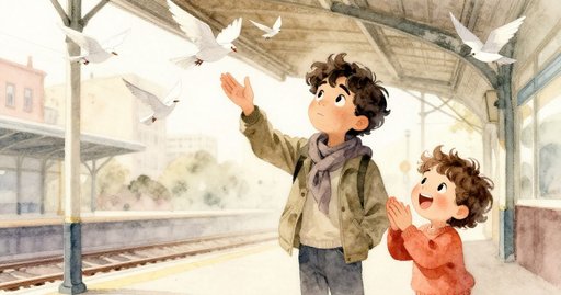 馬可斯踏上博物館屋頂時,城市的正午鐘聲剛落。一架退役軍用直升機停在欄杆旁,深色機身吸收了刺眼陽光。金屬上布滿鏽斑,尾翼原本的字樣早已剝落,但這台機器仍像曾在惡劣天候中開闢逃生路徑的沉重解放者。他舉起相機;今天他想拍下幼苗如何侵佔停機坪的裂縫。下方廣場裡,一支銅管樂隊為晚間的儀式排練,喇叭聲穿過車流。鴿子聚在電纜上,準備在音樂引來更多人群時盤旋在無人看管的點心上空。馬可斯推開一扇維修門想找更好的角度,但門閂卡住了。他用肩膀再次頂住,直到鉸鏈呻吟,門框讓出一條縫,他才擠了過去。