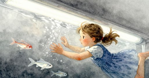 茱麗葉找不到足夠長的樹枝去夾鉛筆,這時背後傳來腳步聲。尼爾提著一桶貝殼走近,低聲問:「需要幫忙?」鉛筆沉在池中央的沙面上,旁邊是一隻動作遲緩的蝸牛與一片綠色玻璃碎片,漂浮的藻屑只能提供稀少的養分。細小氣泡聚成不安的水紋,扭曲了視線。她伸下細枝卻被水流偏開。尼爾挑出一枚扁滑的螺殼放進水裡,殼的重量推動鉛筆往較淺的坡面滾去。