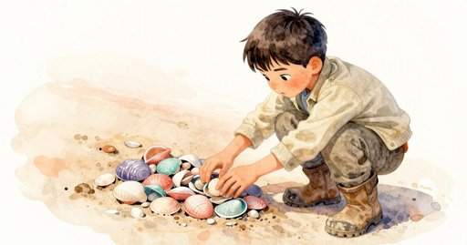 弧線隨石子一點點變寬,每個位置都精確,好似微型儀式在斜斜池底展開。好奇心牽著 Cora 往前探,但懸岩遮住視線,冰涼邊緣緊貼肋骨,她只好收回身子,再把扁石墊在膝下,穩住姿勢;Erik 默默仿效。換了角度,他們看到章魚以細緻的碰觸撬開貽貝殼,毫不費力。殼內並無食物,僅留出恰容一條小腕足蜷進的凹室。當章魚整個鑽入貽貝,並用石子撐住殼口,那模式才顯示意圖——臨時小屋已搭好。