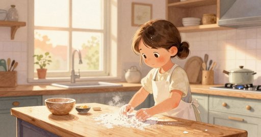 麵團被布覆蓋,發酵緩緩展開,氣泡頂起細微隆起,讓布料輕輕起伏。雷米整理空間時碰到一疊量杯;最上方那只撞擊聲乍響,脆弱的塔瞬間散落成銀亮的瀑布。杯子畫出明亮弧線,最後停在冷卻架底部。計時器一響,他打開烤箱,熱氣湧出,他把焦黃色麵包安放在架上。一束光滑入架下,打在卡在木條間、鑲鋯石的餵養勺子上。它閃著像透過望遠鏡才看得到的遠星光芒,即使麵包噼啪冷卻也依舊穩定。他鉤出勺子,發現柄上爬滿細縫,潮氣已滲入木紋。