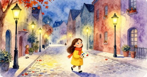 艾蜜莉在傾斜視角下仔細觀察牆上微光馬賽克,色彩漸變引人深思,透露出故事轉折與內心好奇。