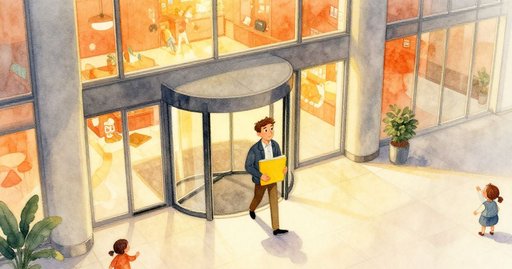 Jorin adjusted the strap of a narrow courier bag and stepped from the escalator into the science museum’s upper concourse. Somewhere ahead, on the rooftop lab, a prototype drone awaited his delivery, and the walkway to the lab opened only during short intervals. The route began with a viewport-lined passage that curved along a massive aquarium; streaks of silvery fish flashed beyond thick glass panels. He moved toward it. The premise of the corridor was simple: panes for viewing on the left, a slim inner rail for quicker traffic. The concept remained simple in theory, yet the flow of bodies shifted unpredictably, and shoulders brushed against his coat before he even reached the first panel.