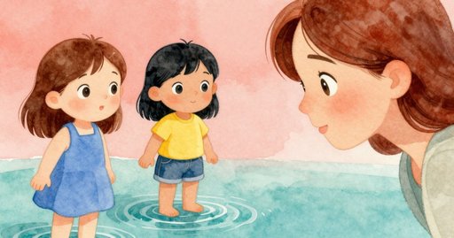 一顆圓滑的小石子從牆邊滑下,碰了碰她的靴子。一團潔白的絮狀物飄落,輕輕停在她張開的手上,像一個願望一樣輕。站在門口的大人笑說:「撲通,撲通。」Cora 仍然保持不動。一滴飽滿的水珠炸開,水花跳起,其中一滴拍在她的臉頰。她眨了眨眼。石子停著,絮狀物被微風帶走,最後一滴水「噗通」墜下。