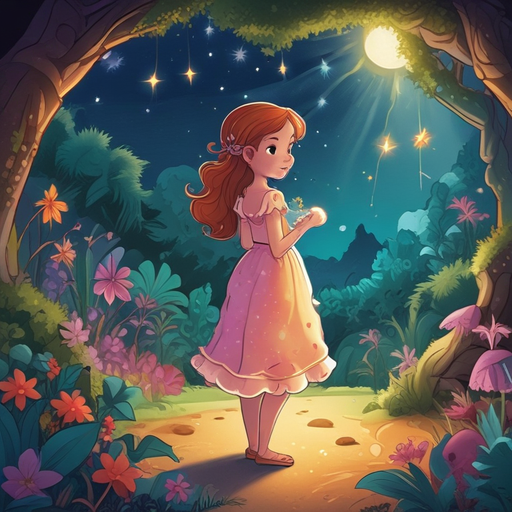 In a quiet forest, a fairy named Lila danced in the moonlight. Her wings sparkled, creating a glimmer that lit up the trees. One night, she found a sleeping child and whispered a magical dream. The child dreamed of flying with fairies and exploring enchanted lands. When morning came, the child awoke with a smile, filled with wonder and light from the fairy's gift.