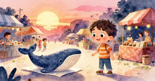 米洛拎著折疊小凳與舊素描簿,黎明後便抵達老港口。他花了整個清晨削好鉛筆,只為尋找藏在磚巷迷宮裡的巨大鯨魚壁畫。整個夏天他四處旅行,卻總在談話中聽到關於這幅畫的傳聞,於是又回到故鄉。第一個路口,他停下腳步向一位早起的漁夫打招呼,對方的靴子在濕石上叩擊作響。假如米洛早知道小巷轉彎如此陡急,他本會帶更廣角的鏡頭做參考,但他依舊往前。前方的盲角遮住了海面,也遮住了難得一見的牆。