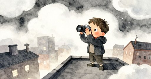 Korin站在屋頂邊緣,腳下的城市景象像層層紙板般向外展開。節能廣告牌發出的橘色光懸在他頭頂,為欄杆鍍上一層穩定的琥珀色。當地新聞曾報導每晚有一隻蝙蝠在高樓間穿梭,Korin想拍到第一張清晰的照片。一陣強風掀動碎石,礫石撞擊排水槽,迫使他退後一步。屋頂逃生門被多層舊清漆牢牢封住,他攀爬狹窄的消防梯時衣衫已濕透。現在他抬起相機等待,血脈在耳邊鼓動,車流的嗡鳴從下方湧上來。